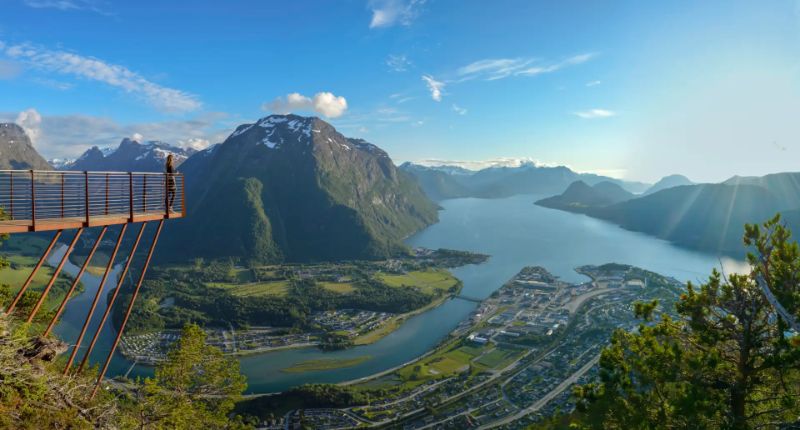 Nesaksla kalna virsotne, kas atrodas 708 metrus virs jūras līmeņa, piedāvā elpu aizraujošu panorāmu uz Romsdālenes fjordu un apkārtējām kalnu virsotnēm. Norvēģijas dabas skarbo skaistumu iespējams izbaudīt gan dodoties pārgājienā pa taku, gan paceļoties ar pacēlāju, ko nereti dēvē par Debesu liftu.