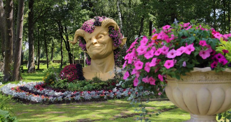 Muižas dārzs šajā laikā kļūst par dzīvu kompozīciju, kur ziedu laukumi, ornamentāli stādījumi un iespaidīgas skulpturālas formas saplūst vienā veselumā. Tā ir vieta, kur var ne tikai redzēt, bet arī saprast — kā tiek veidots efekts un kā ar krāsu un apjomu rodas īsti ziedu svētki.