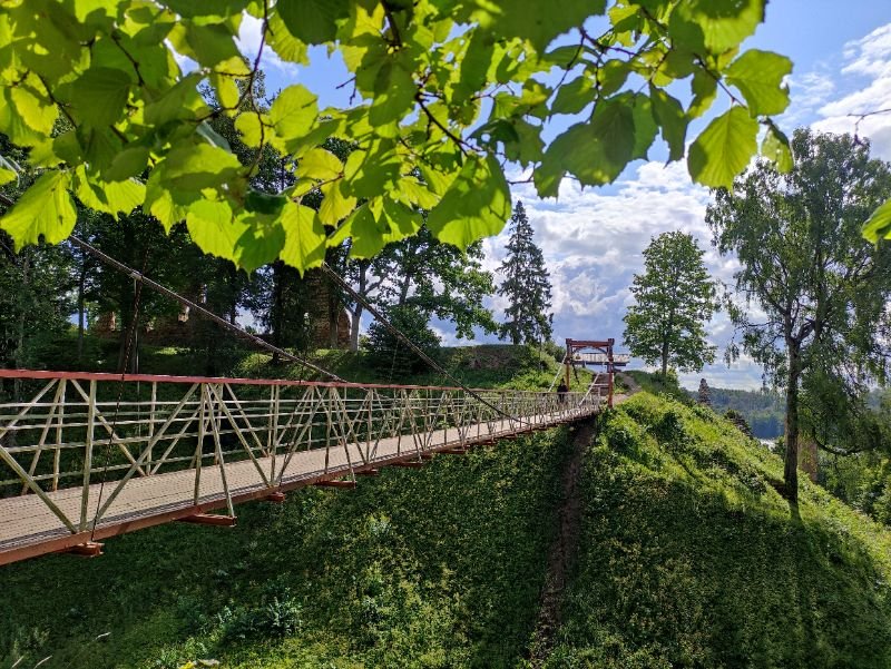 Apmeklēsim vienas no romantiskākajām pilsdrupām, uz kurām ved sarkans Latvijā izgatavotais piekaramais tiltiņš, redzēsim sarkanās betona zemenes, kas veidotas pēc Paula Kondases gleznas motīviem, Dziesmu svētku estrādi, Vīlandes Svētā Jāņa baznīcu.